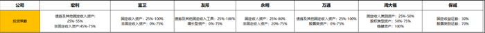 以下是香港主流保險公司權(quán)益類與固定收益類投資配比,雖占比略有不同,卻也多有重疊。