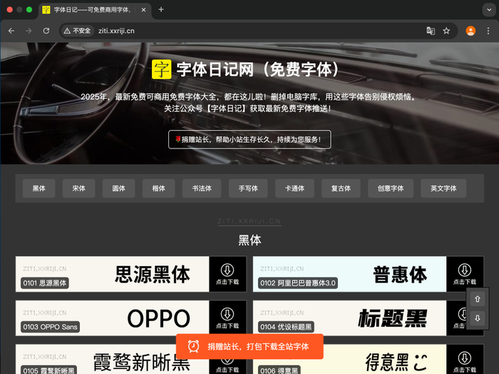 但!字體日記網(wǎng)的出現(xiàn),直接打破了這一困局!它就像免費(fèi)商用字體界的 “掃地僧”,低調(diào)卻實(shí)力超群網(wǎng)站里收錄了 200 + 款免費(fèi)可商用字體,每一款都經(jīng)過(guò)嚴(yán)格篩選,明確標(biāo)注授權(quán)來(lái)源,徹底斷絕侵權(quán)風(fēng)險(xiǎn)無(wú)論是電商設(shè)計(jì)急需的阿里巴巴普惠體,它多種字重適配不同場(chǎng)景,用在商品主圖和詳情頁(yè),瞬間提升專(zhuān)業(yè)感;還是做文創(chuàng)、海報(bào)必備的。