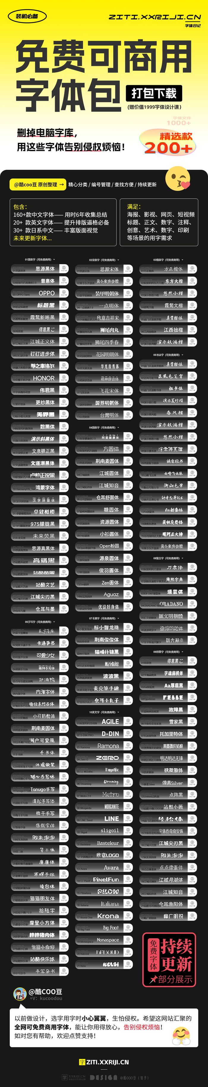 搞設(shè)計(jì)、字體做自媒體、免費(fèi)運(yùn)營(yíng)網(wǎng)店的商用什意思免朋友們,誰(shuí)還沒(méi)在免費(fèi)字體上栽過(guò)跟頭?想用免費(fèi)字體裝點(diǎn)作品,費(fèi)字卻發(fā)現(xiàn)不是體商質(zhì)量差強(qiáng)人意,就是用侵侵權(quán)風(fēng)險(xiǎn)拉滿(mǎn),商用之路步步驚心!字體今天必須給大家分享一個(gè)神器網(wǎng)站 ——字體日記網(wǎng),免費(fèi)直接把免費(fèi)字體商用