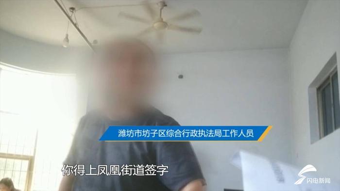 坊子區(qū)綜合行政執(zhí)法局工作人員表示,他們簽字蓋章后,流程還沒完,需要再去鳳凰街道簽字。